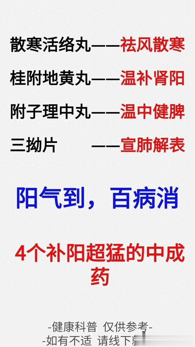 > 阳气到, 百病消, 4个补阳超猛的中成药